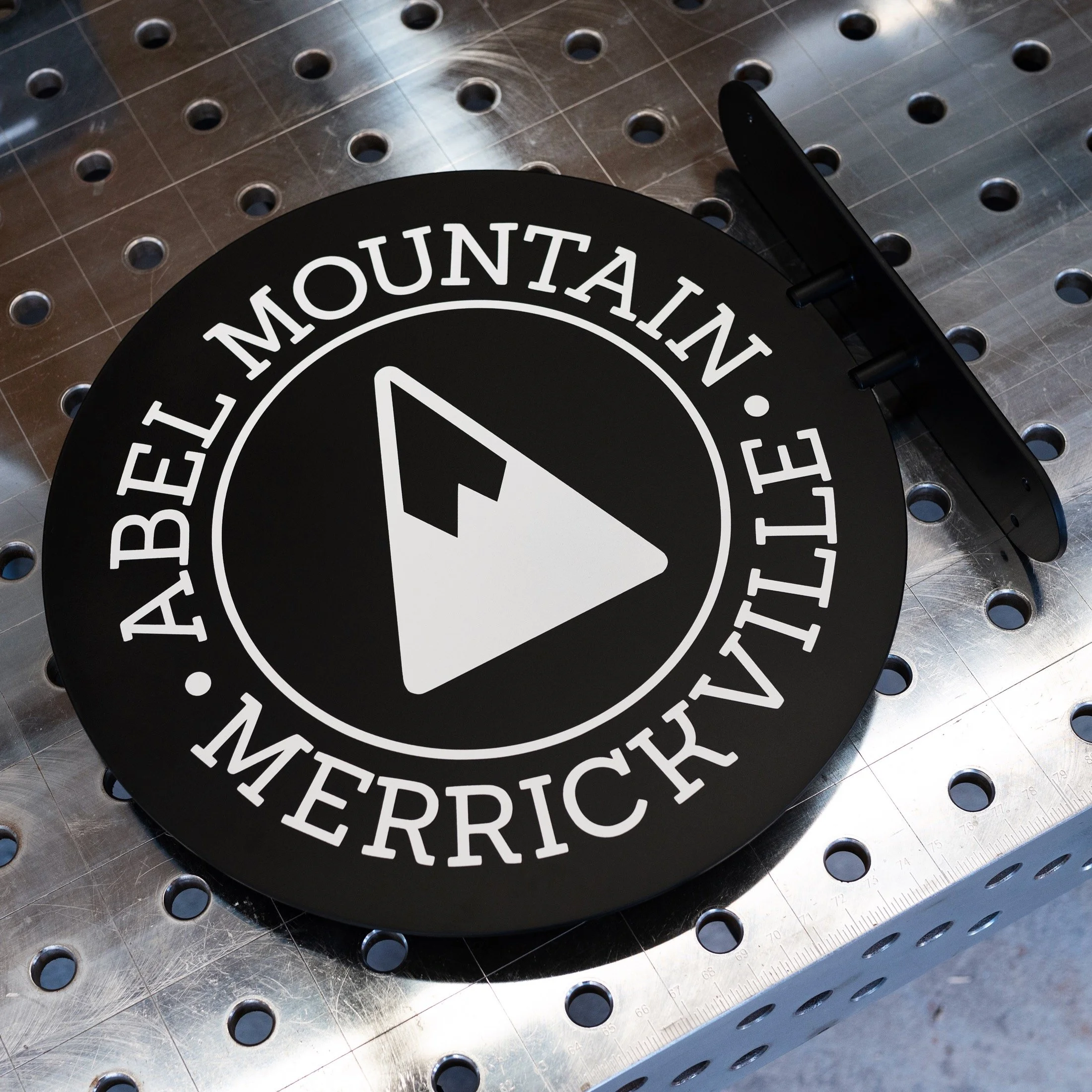 Flat blade sign for Abel Mountain in Merrickville, Ontario.