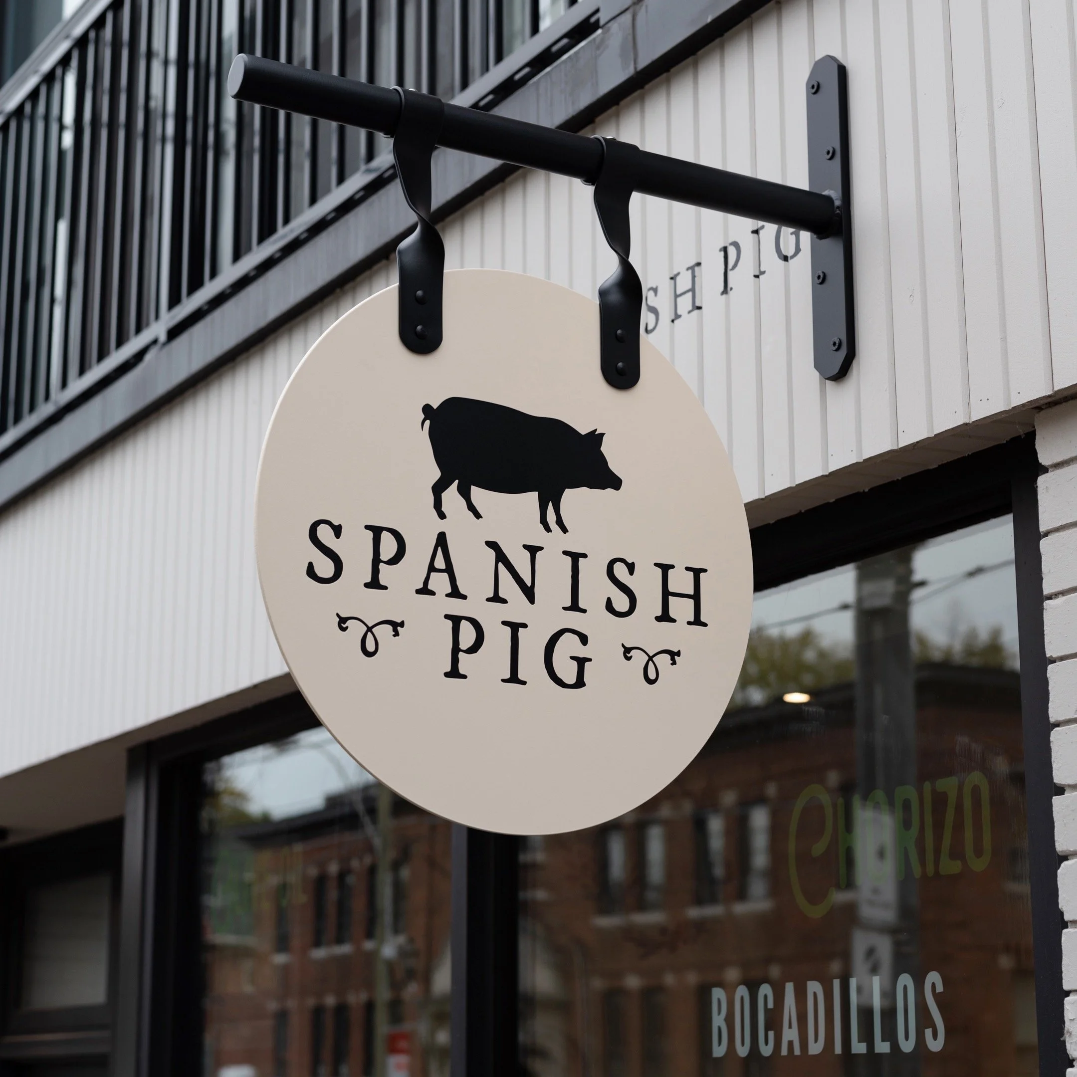 Blade sign and bracket for Spanish Pig in Toronto.