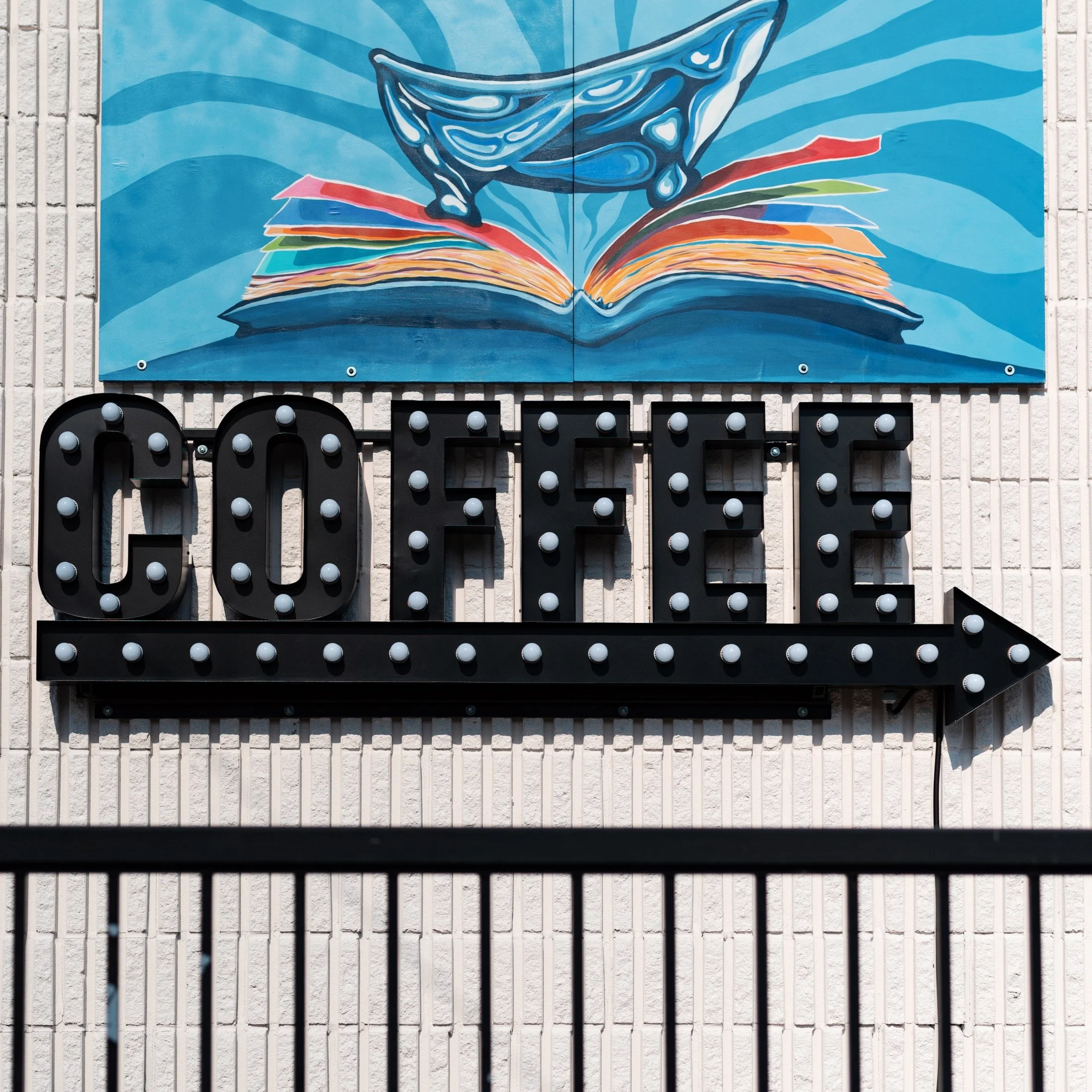 Hand bent channel letters with marquee bulbs, for Lodge Coffee House in Bath, Ontario.