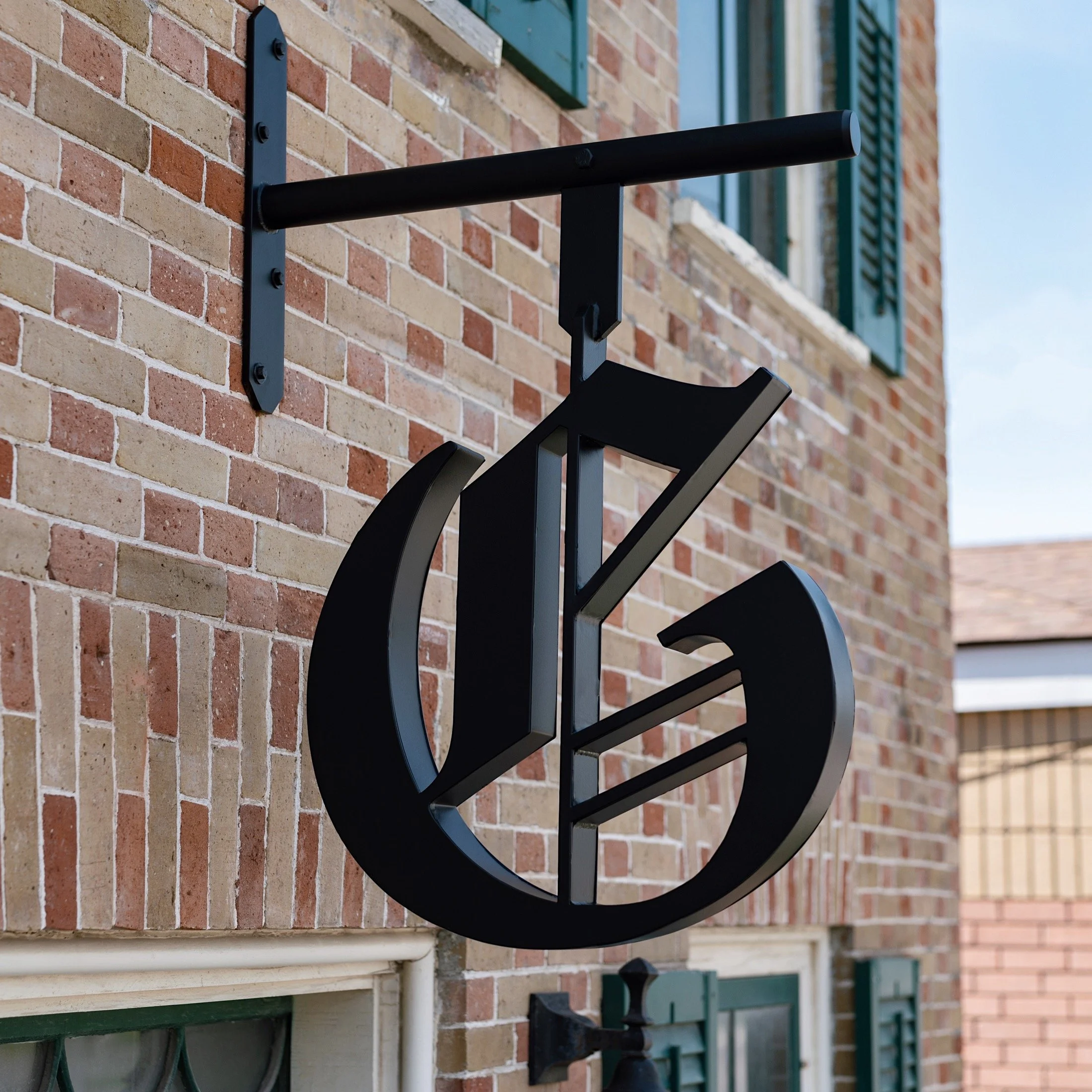 Hand bent double sided channel letter and bracket, for the Picton Gazette in Picton, Ontario.